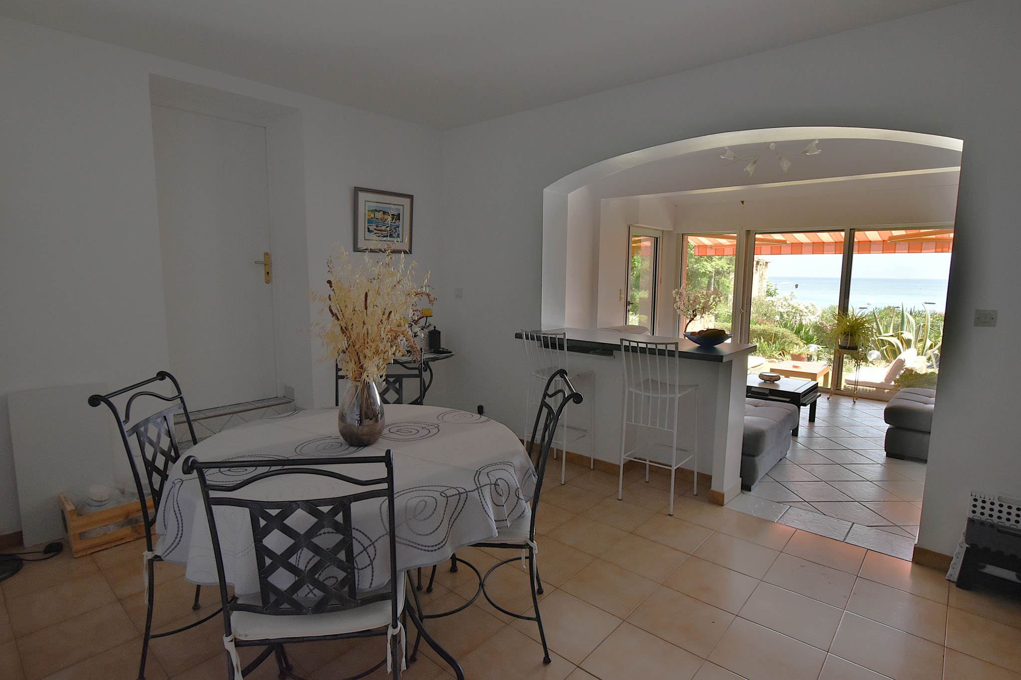 A l'extérieur se trouve un cagibi, une terrasse, un très beau jardin. Vue mer, résidence avec parking, accès à pieds à la plage.
